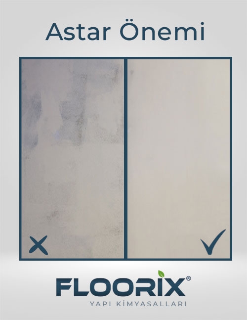 Uygulama öncesinde zemin yüzeyi; toz, kir, yağ, su ve zayıf parçacıklardan tamamen arındırılmalıdır. Astar, boya uygulamasından önce yüzeyin emiciliğini dengelemek ve aderansı artırmak amacıyla kullanılmalıdır.